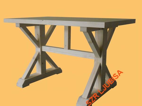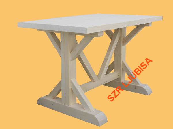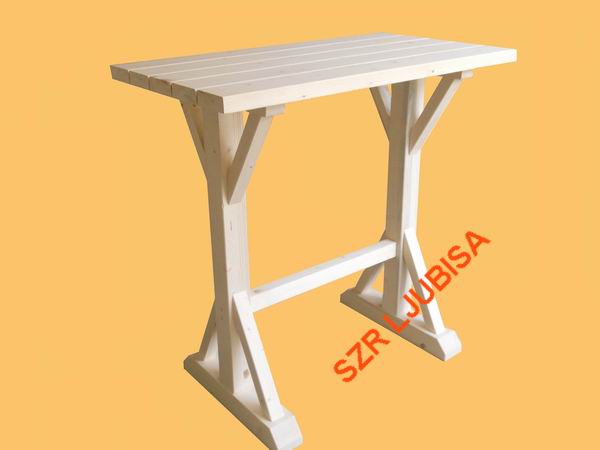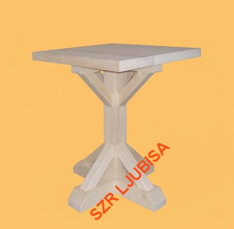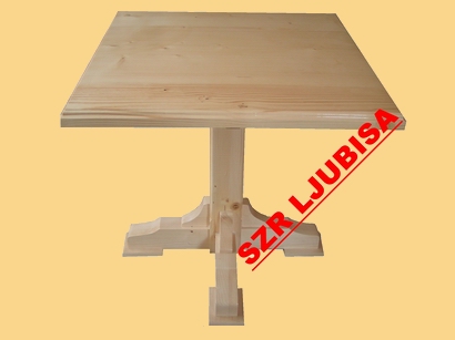 Etno drvene stolove izradjujemo od najkvalitetnije parene bukovine,smrce,bora... izuzetno su stabilni kako sa cetiri nogara tako i sa jednim centralnim stubom, i jake su konstrukcije. Debljina drvene ploce stola je 4,5cm sto je cini masivnijom od ostalih slicnih proizvoda na trzistu. Kod etno stolova sa jednim i dva stuba debljine stubova su 11X11cm, stope su izuzetno masivne i jake i prate sirinu drvene ploce stola koja se izradjuje u dimenzijama 60x60 70x70 80x80 ili sa dva stuba 60x100 80x120 ili po zelji kupca. Drveni etno stolovi se mogu izradjivati sa okruglom, osmougaonom, kvadratnom i pravougaonom plocom, ili po vasoj zelji. Nasi drveni etno stolovi se dobro uklapaju u sve vrste enterijera kucnih i ugostiteljskih objekata.